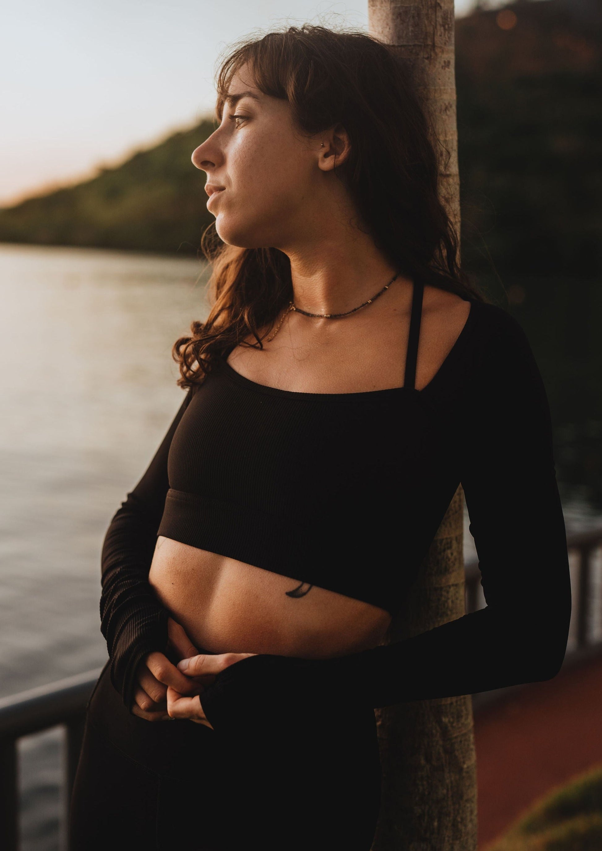 Les vêtements OANA utilisent des tissus techniques adaptés à la pratique du yoga et du pilates, favorisant le confort et la liberté de mouvement.